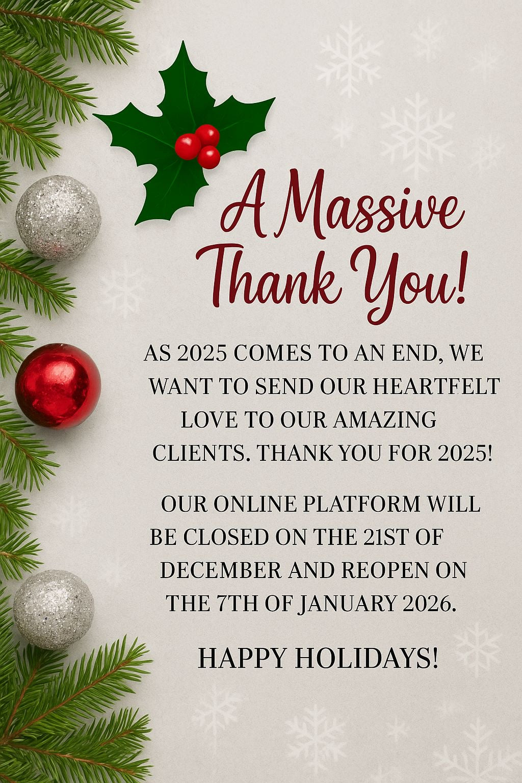 Please note any orders placed after Sunday the 21st of December will only be processed after the 7th of January 2026