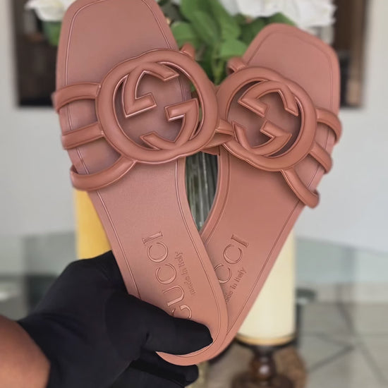 INTERLOCKING G RUBBER SLIDE SANDALS - MOCHA
