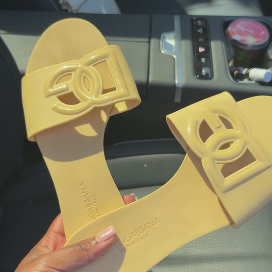 DG RUBBER SLIDE SANDALS - NUDE/ BUTTER YELLOW