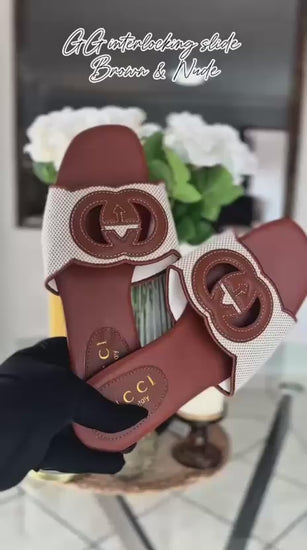 GG TWO TONED INTERLOCKING SLIDES - BROWN & NUDE