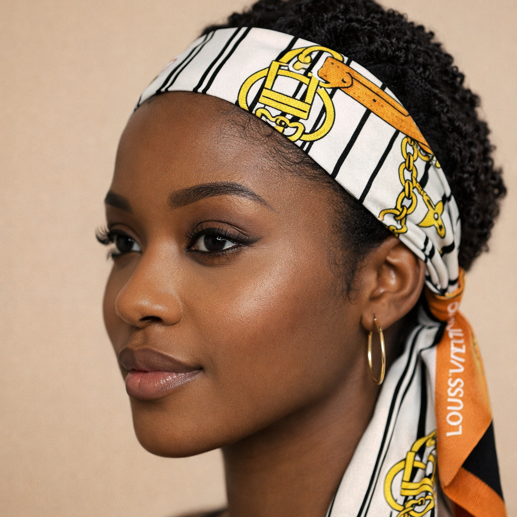 MONOGRAM INFINITY HEADBAND SCARF - WHITE AND GOLD